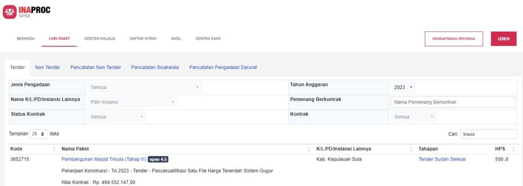 Anggaran pembangunan masjid tri sula tahap III ditahun 2023. Sumber: LPSE.